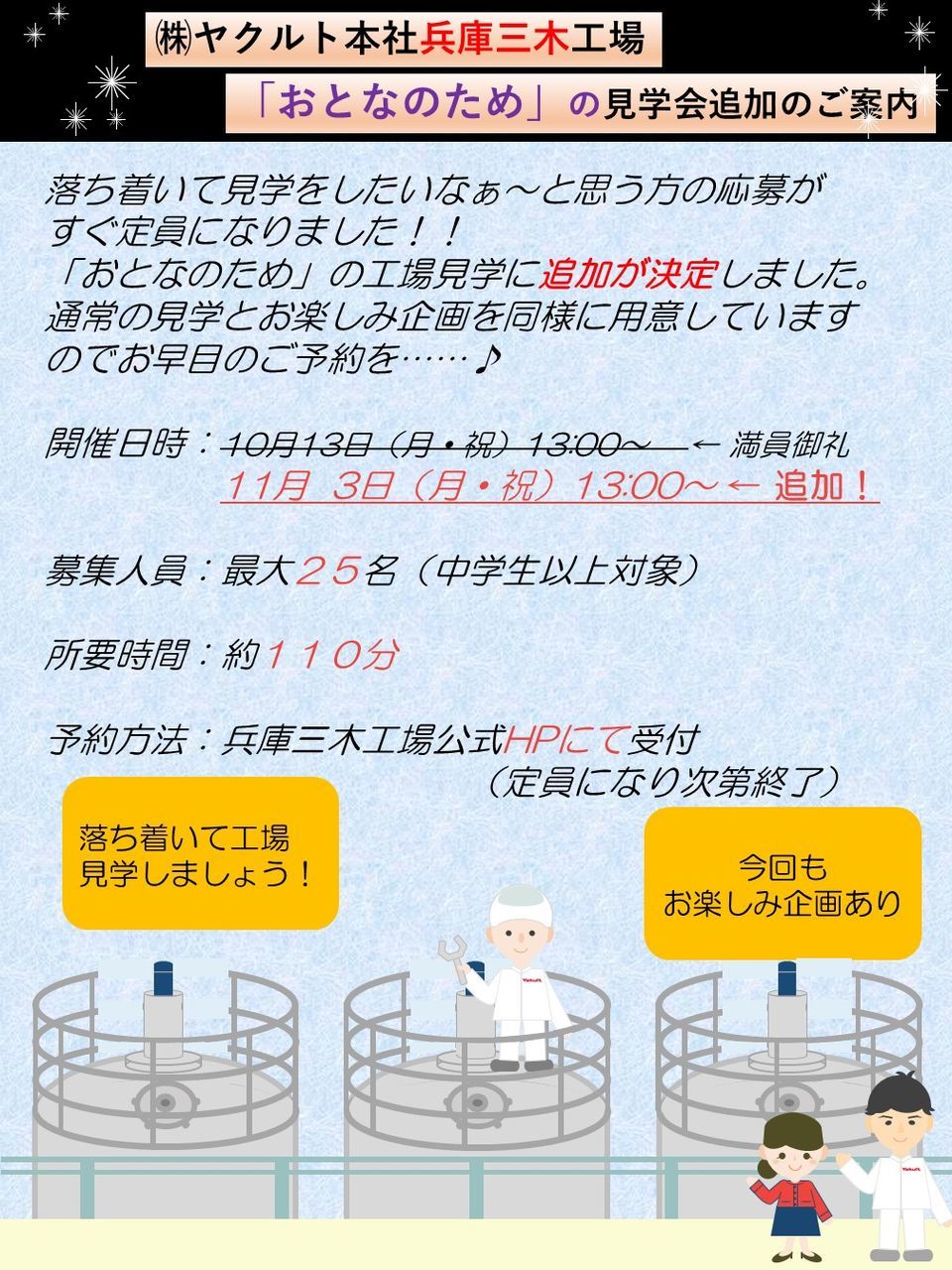 メールアドレス:kojyokengaku-hyogomikikojyo@yakult.co.jp